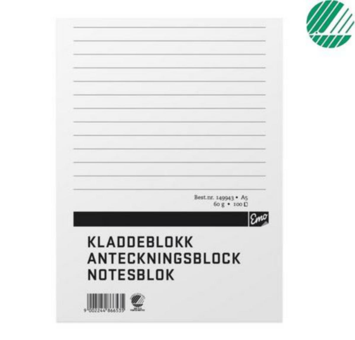 Kladdeblokk A5 Linjert 60g EMO 100 sider