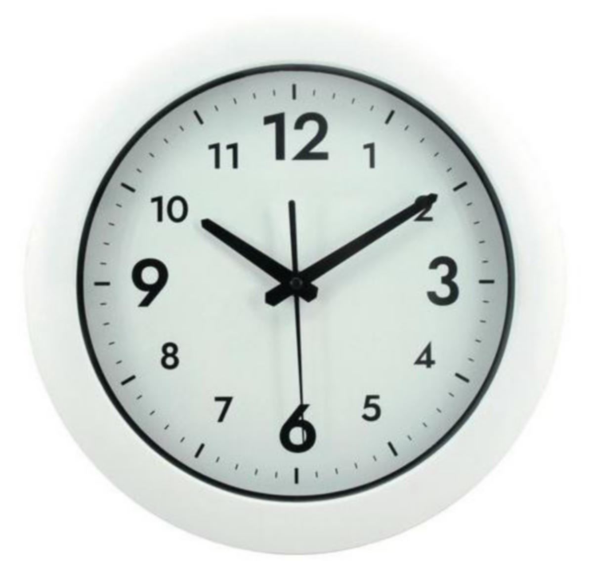 Veggklokke, Alba® Easytime i ABS-plast, velegnet til store lokaler. Klokken har store tall, svart sekundviser og kvartsurverk. Bruker 1 stk. LR06-batteri (følger ikke med). Diameter: 30 cm.