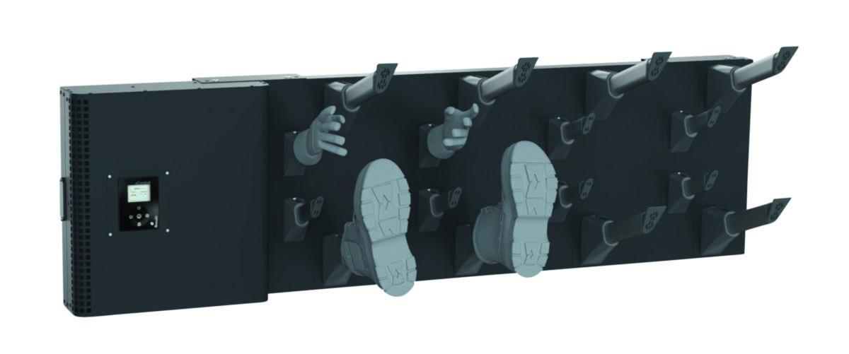 Tantum VAR 4+4 Sterex – effektiv og hygienisk tørkepanel for profesjonelle. Et plassbesparende, profesjonelt tørkepanel som tørker 4 par sko + 4 par hansker raskt og hygienisk. Med Sterex plasma-teknologi for desinfeksjon og luktreduksjon, samt brukervennlig xControl-styring, får du en løsning som kombinerer høy ytelse med lavt energiforbruk – ca. 900 W.
