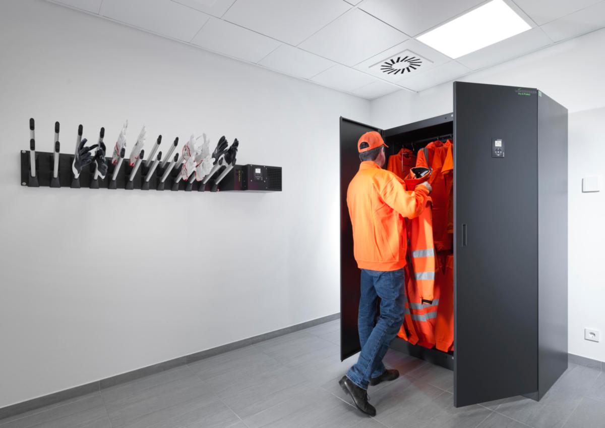 SpeedDry-systemet kombinerer kraftig luftsirkulasjon med oppvarmet luft for rask og skånsom tørking. Sterex-teknologien fjerner bakterier og lukt, og bidrar til et bedre arbeidsmiljø. Den digitale styringen gir enkel betjening og mulighet for programmering av tørkesykluser. Tørkeren kan monteres både horisontalt og vertikalt, og leveres med veggfeste. De ovale tørkearmene i anodisert aluminium med unike luftutblåsende endestykker sikrer robusthet og lang levetid – perfekt for krevende miljøer som industri, fiskeri, havbruk, produksjon og idrett.