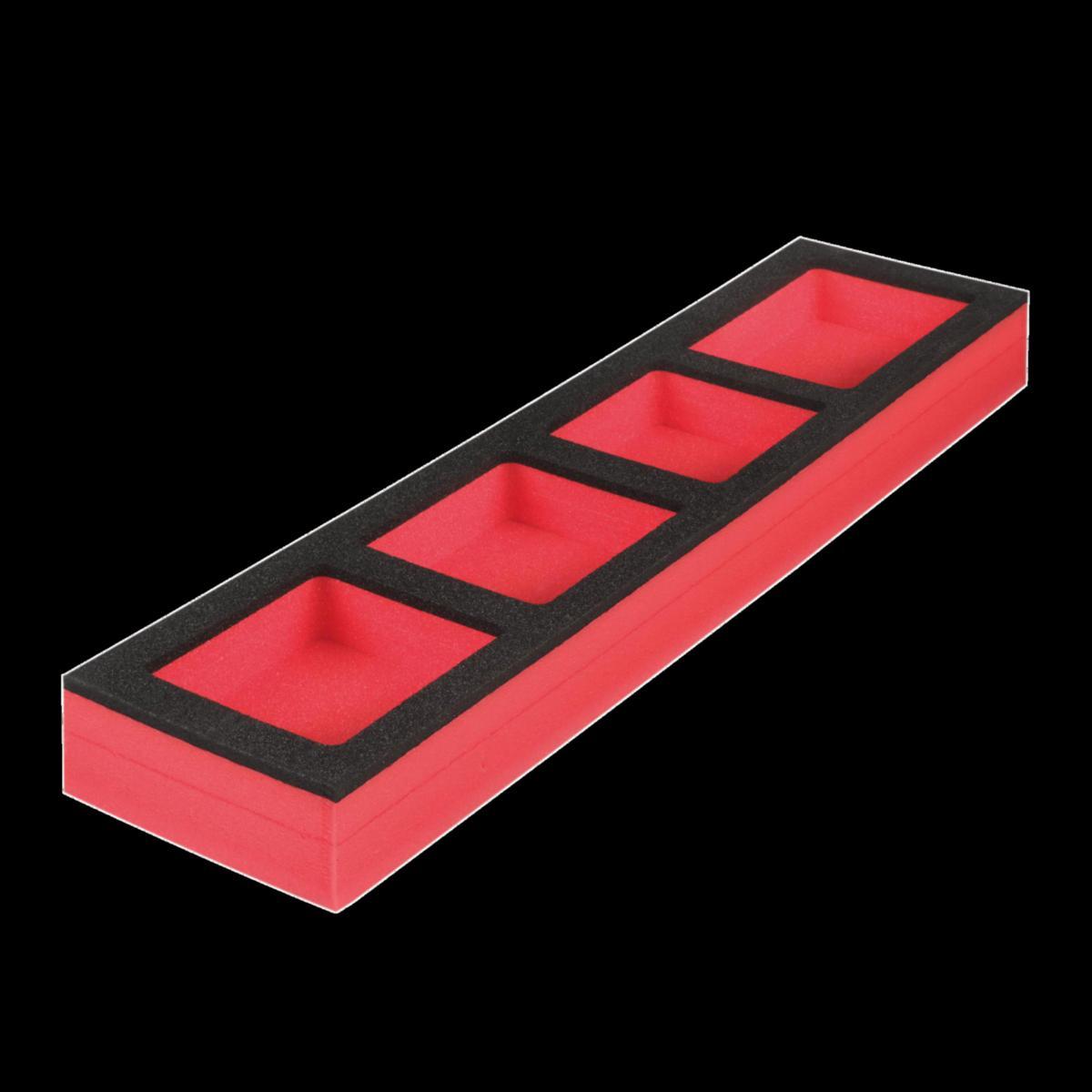 Høy tetthet av skum forbedrer holdbarhet og motstand mot slitasje. Rask og enkel identifikasjon av verktøy og tilbehør på grunn av den røde bakgrunnen. Laserskjært skum for å maksimere plassen i 46" ståloppbevaring. Ideell for å lagre ekstra stikkontakter, tilbehør, mynter, skruer og andre små deler. Passer til Steel Storage-serien.