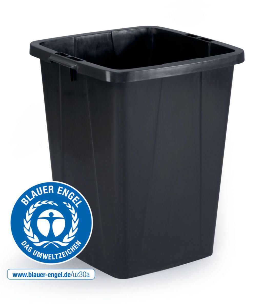 Plasten som denne søppeldunken er laget av består av en høy prosentandel gjenvunnet plast som samles inn, samtidig som den har lang levetid og er fullt resirkulerbar. Miljøsertifisert Praktiske håndtak for enkel transport Ideell til kildesortering, gjenbruk eller avfall Mål: H610xB520xD490mm Anbefalt mål på pose: B114xH150cm
