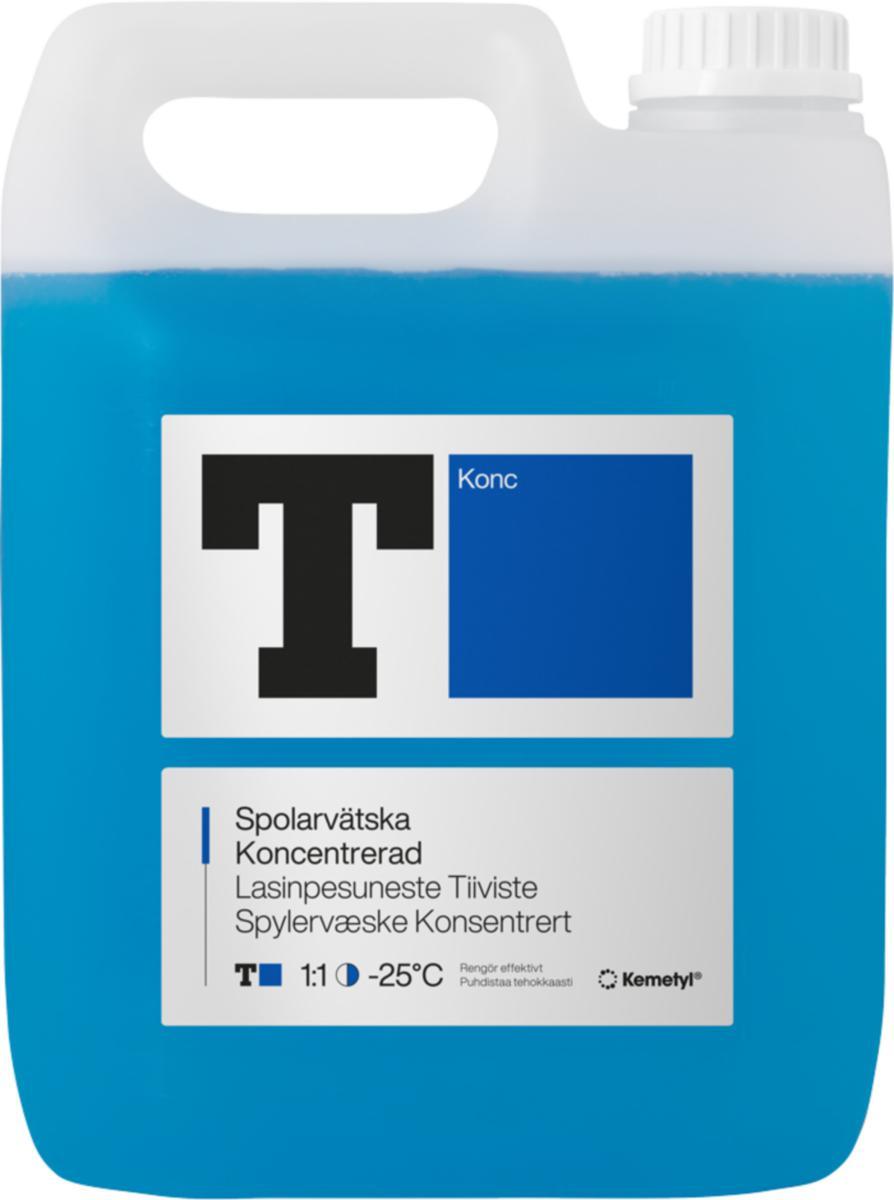 T-blå vindusspylervæske er frostbeskyttelses- og rengjøringsmiddel til bilens ruter, lyskastere, vinduer og speil. T-blå fjerner effektivt veisalt, trafikkfilm, olje og annet smuss. Skader ikke bilens gummilister, viskerblad eller lakk.