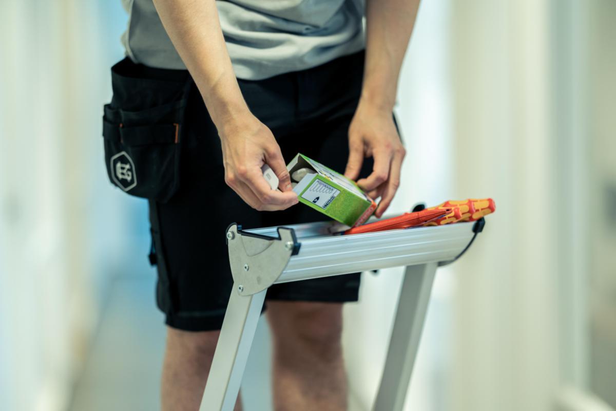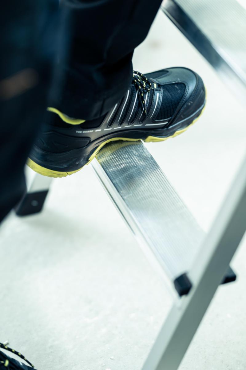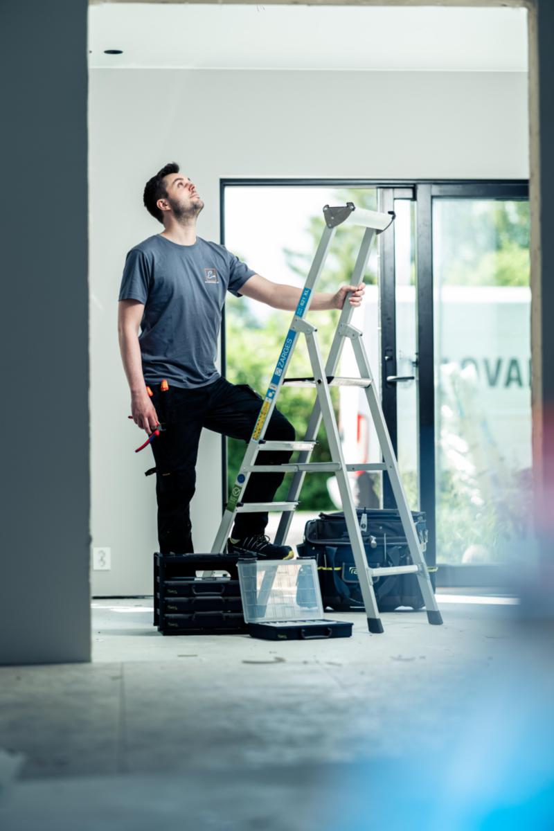Oppgradert med økt trinnbredde som gir bedre stabilitet og bedre komfort når man står på øverste plattform. Litt større trinnavstand, slik at du kommer enda høyere. Produsert i aluminium og har lukket vangeprofil, det gjør at vekten blir lav. Et ekstra forsterket trinn på baksiden som er godkjent for 150 kg. Svertefri overflate, avstiverstag og verktøybrett i aluminium. Typegodkjent og NS-EN 131 godkjent.smidig. Passer godt for montasje, industri og håndverk