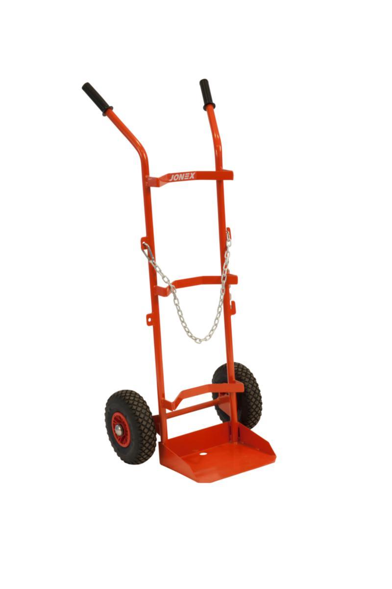 Utviklet for rask og smidig håndtering av gassflasker som passer til 20, 40 og 50 liters gassflasker og propanflasker. Kommer med lufthjul eller massivhjul.