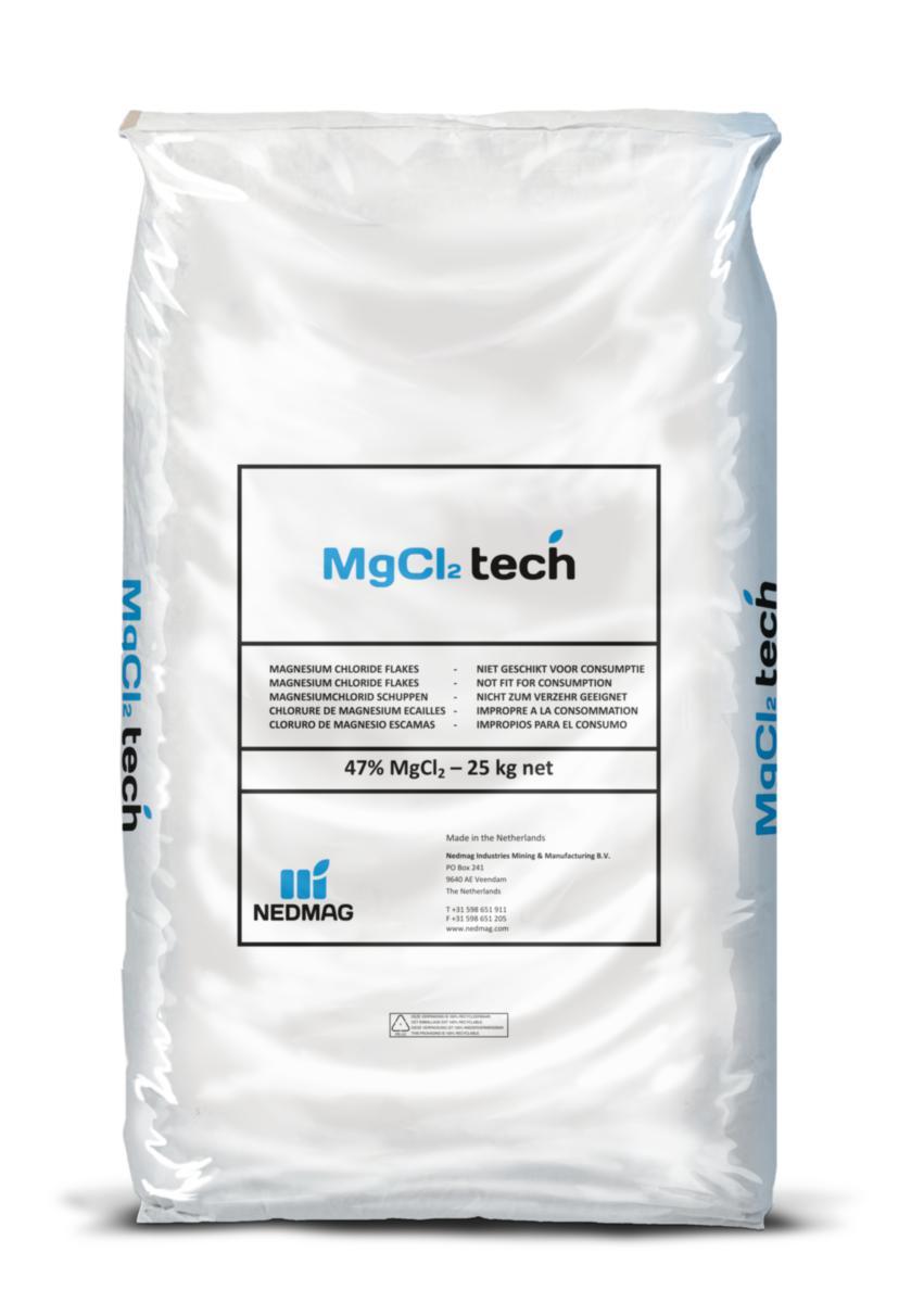 Magnesiumklorid, flak 47 %, er et naturprodukt og brukes hovedsakelig som sommerveisalt, men kan også brukes som vintersalt. Produktet er ekstremt hurtigvirkende og har mange fordeler: • Støver ubetydelig ved håndtering • Binder støv umiddelbart • Skånsom mot huden • Gir mindre korrosjon enn andre veisalter • Er snillere mot vegetasjon og dyr • Inneholder mindre klor enn andre veisalter • Mindre aggressiv mot betong. Effektiv ned til ca -25°C. Sommerbruk: Kan spre seg og begynne å virke ved hjelp av morgenduggen. Dosering 0,65 kg/m2.