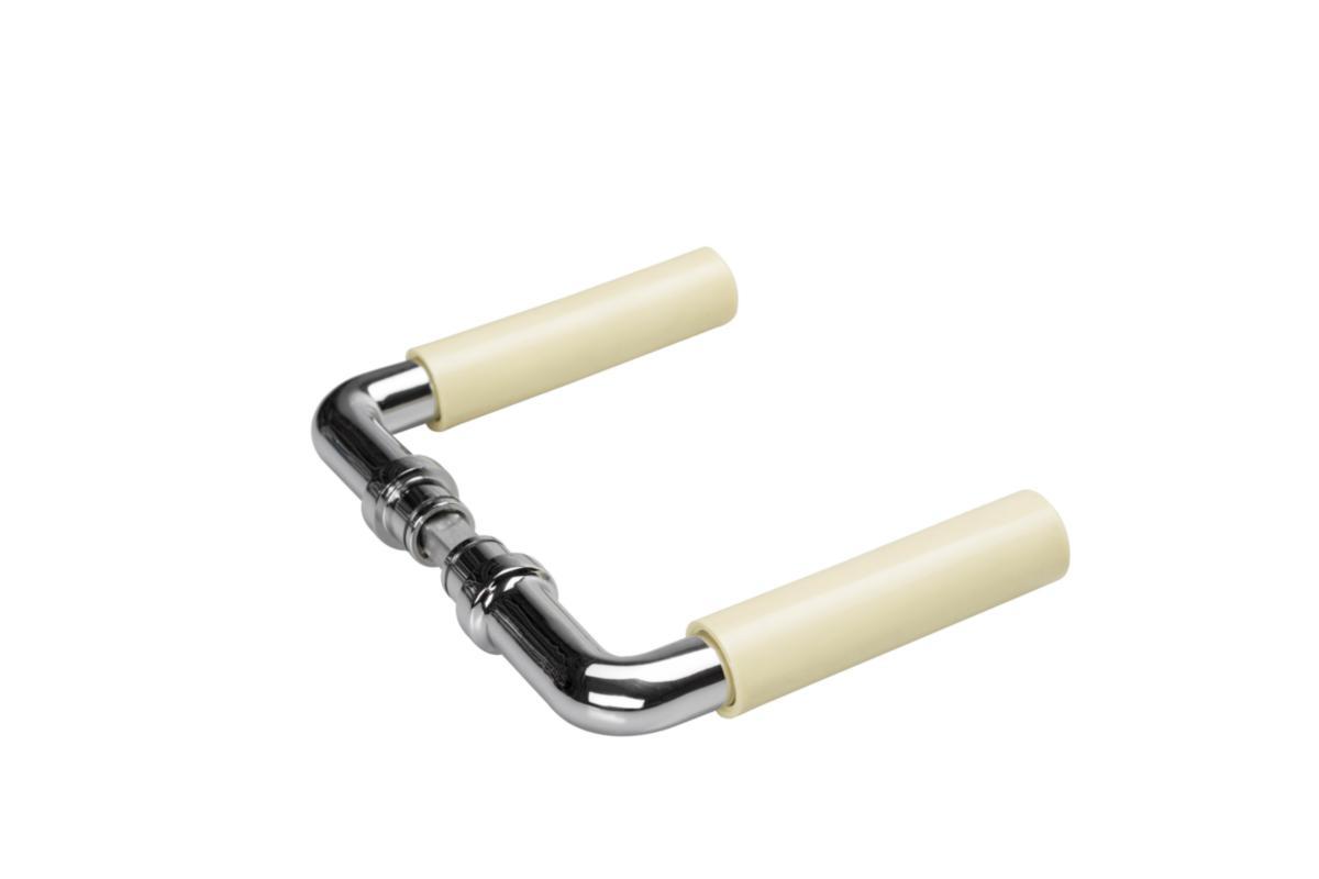 Innerdørvrider av forkrommet messing. Uten rosett. Håndtakshylse i plast. Passer dørtykkelse 38-42 mm.