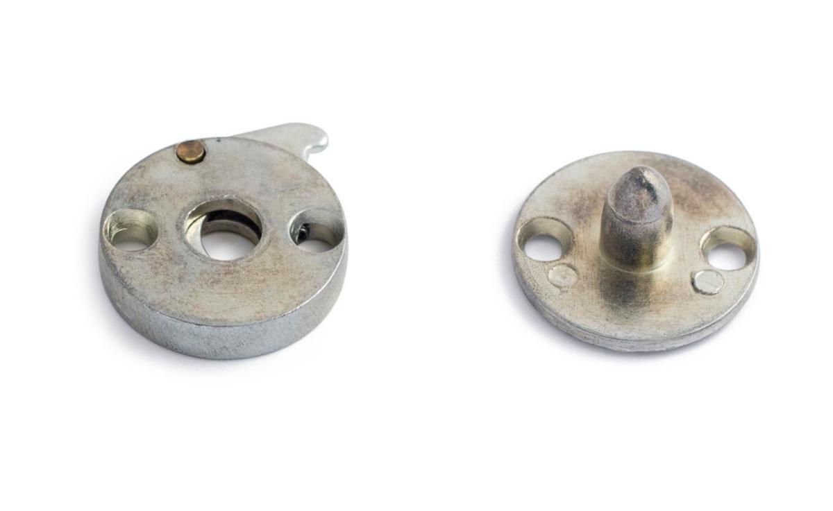 Koblingshake av presstøpt zamakmetall. Fjærbelastet låsing.