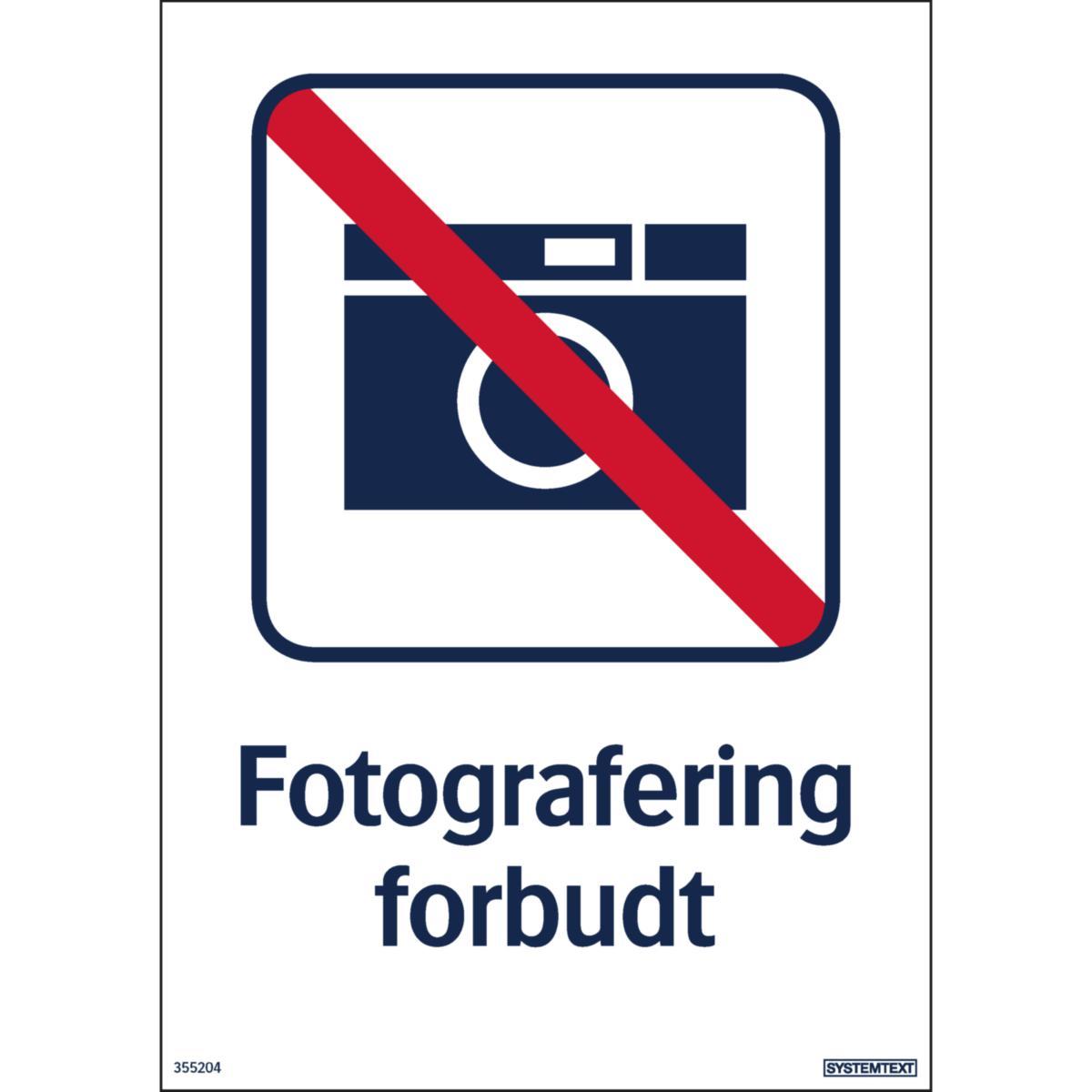 Skilt Systemtext "Fotografering forbudt"