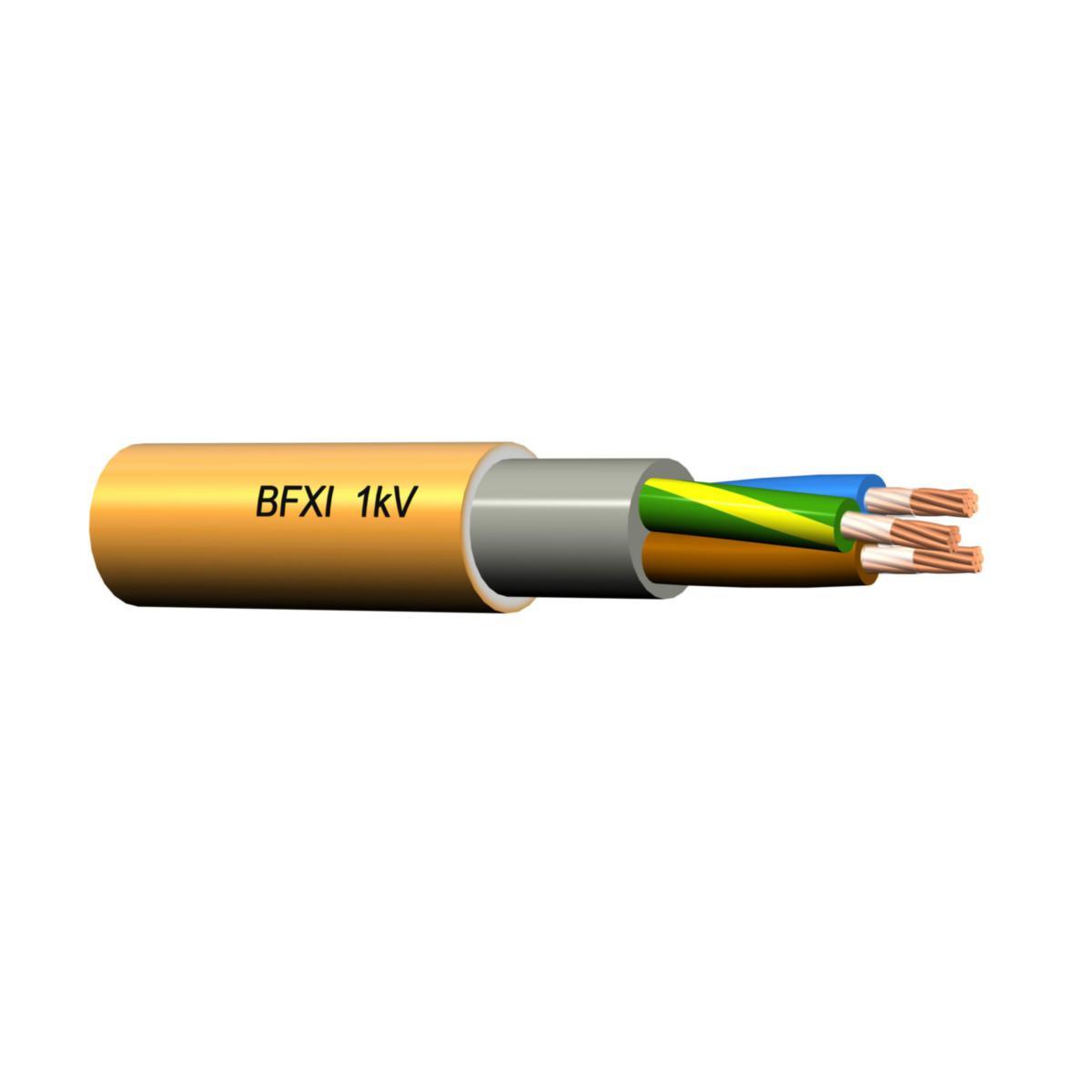 Funksjonsikker, dobbelisolert installasjons- og jordkabel med kobberleder. PEX lederisolasjon, halogenfri flammehemmet polymer ytrekappe. Bruksområde: Anbefalt brukt i alle slags rom innendørs, samt utendørs. Kan forlegges i jord, men med ekstra beskyttelse i form av rør eller dekkbord. Brukes der det er krav om at kabelens funksjon skal opprettholdes ved brann, f.eks. som tilførselskabel til heiser. BFXI 0,6/1 kV er en halogenfri og funksjonssikker utgave av kabeltypen PFXP 0,6/1 kV. Konstruksjon og test standard: CENELEC HD 604-5D, NEK IEC 61034/EN 50268, NEK IEC 60754/EN 50267, NEK IEC 60331/EN 50200, NEK IEC 60332-3C/EN 50266 Konstruksjon: Leder: Flertrådet glødet kobberleder, rund eller sektorformet. Isolasjon: Mica-tape + PEX Fyllkappe/båndering. Ytre kappe: Halogenfri, flammehemmet polymer. Farge: Orange. Maks. kontinuerlig ledertemperatur: 90 °C Min. inst. temp.: 10 °C.
