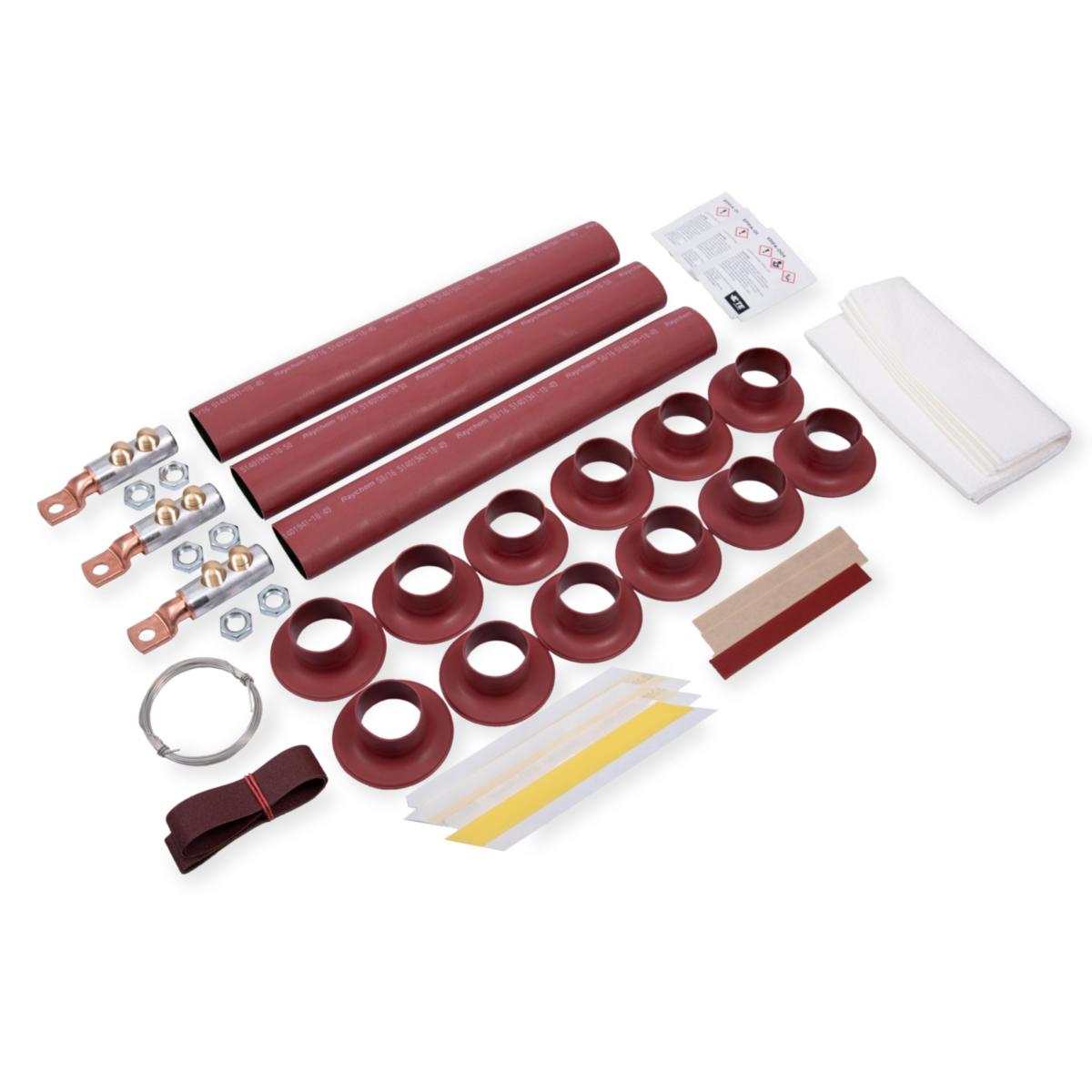 Varmkrymp endeavslutninger med Al-Cu (Bi-metall) mekanisk kabelsko. Ufortinnet kobberflagg. Bi-metall kabelsko har gode korrosjons egenskaper og anbefales brukt på korrosjonutsatte steder.