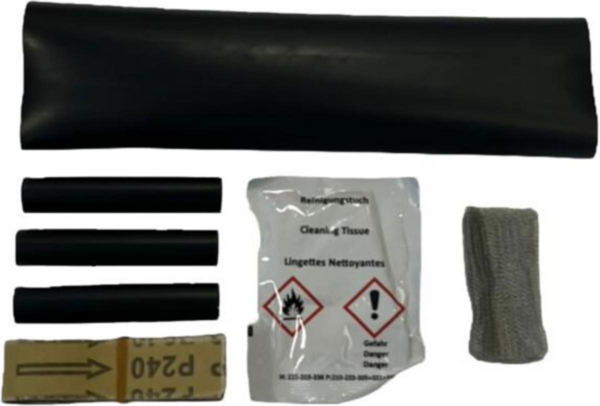 Halogenfri. Settene inneholder: Ytterslange, 3 stk fasehylser, fortinnet kobbernett, smergelpapir, renseserviett og bruksanvisning. For plastisolert sektor/flertrådet/solid kabel, f.eks.: PFSP, TFSP.