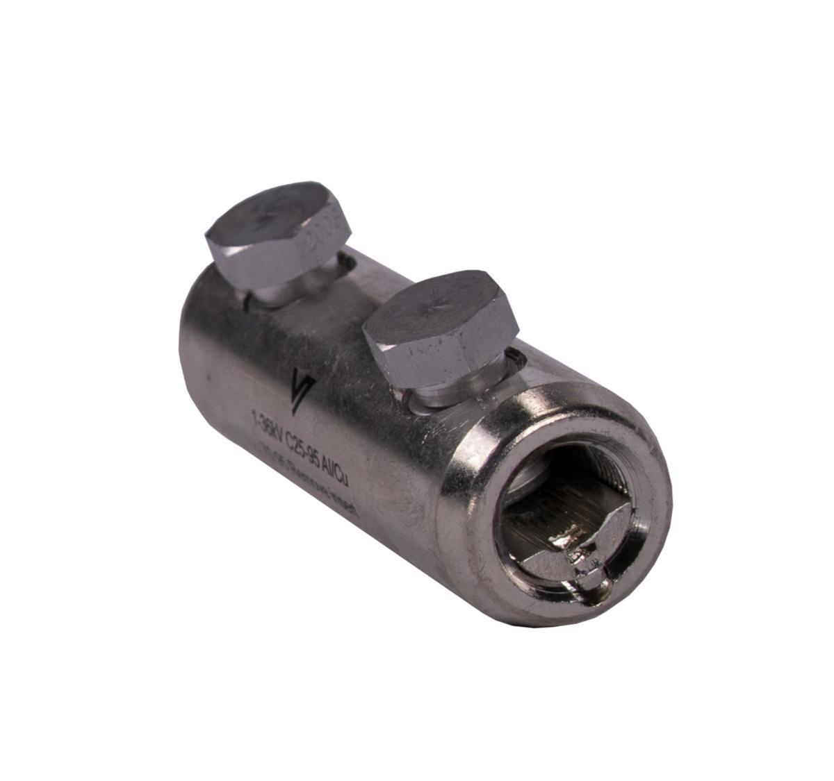 Melbye’s mekaniske skruskjøtehylser er laget av fortinnet aluminium, og har momentstyrte bolter som sikrer riktig montering hver gang de installeres. Alle boltene er standard metrisk sekskant. De er laget med tverrspor på innsiden for best mulig strekkfasthet av lederen. Da hylsen er fortinnet, kan den brukes til både aluminium og kobber ledere.
