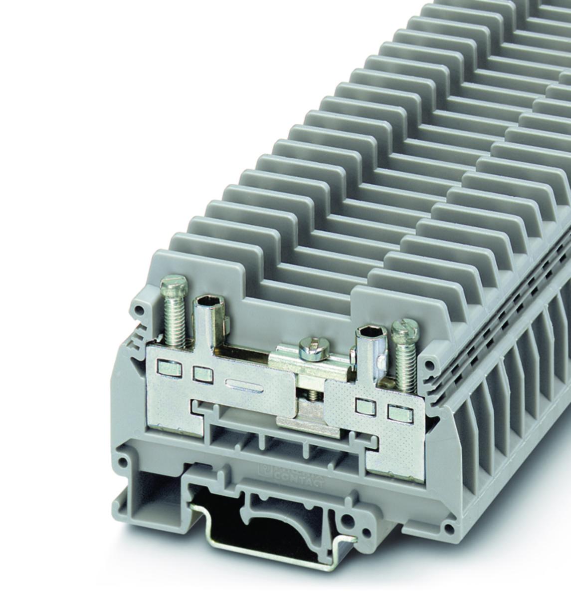 Måletrafoskilleklemme, Med to testbøssinger for 4 mm testplugger eller for montering av koblings- eller skrulasker, tilkoblingstype: Skrutilkobling, tverrsnitt: 0,5 mm² - 10 mm² , AWG: 20 - 10, bredde: 8,2 mm, monteringstype: NS 35/7,5, NS 35/15, NS 32, farge: grå