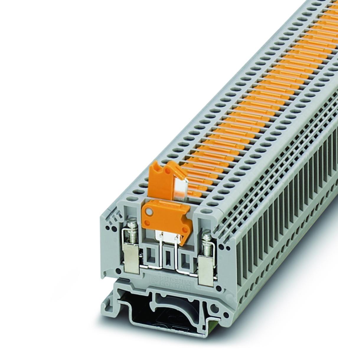 Sikringsklemme for G-sikringsinnsats, tverrsnitt: 0,2 - 4 mm², AWG: 26 - 10. Varianter med lysindikator. Store merkeflater. Sikringshendel festet i sluttposisjon.