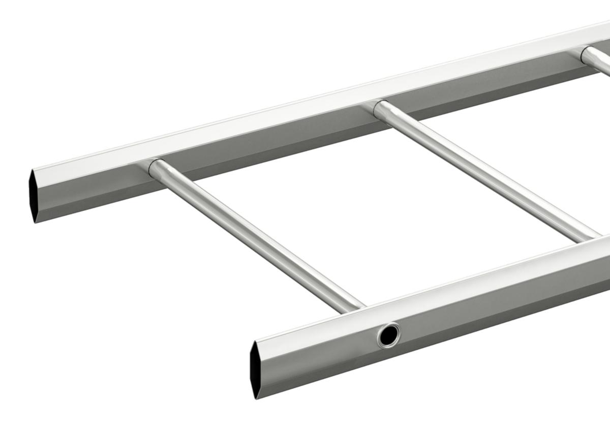 Varmforsinket (varmgalvanisert) (60 µ), eller ZINKPOX® lakkert kabelstige, 6m lengder, lukket vange, runde trinn. Bruksområder: industrikabelstige for både innen- og utendørs installasjon.