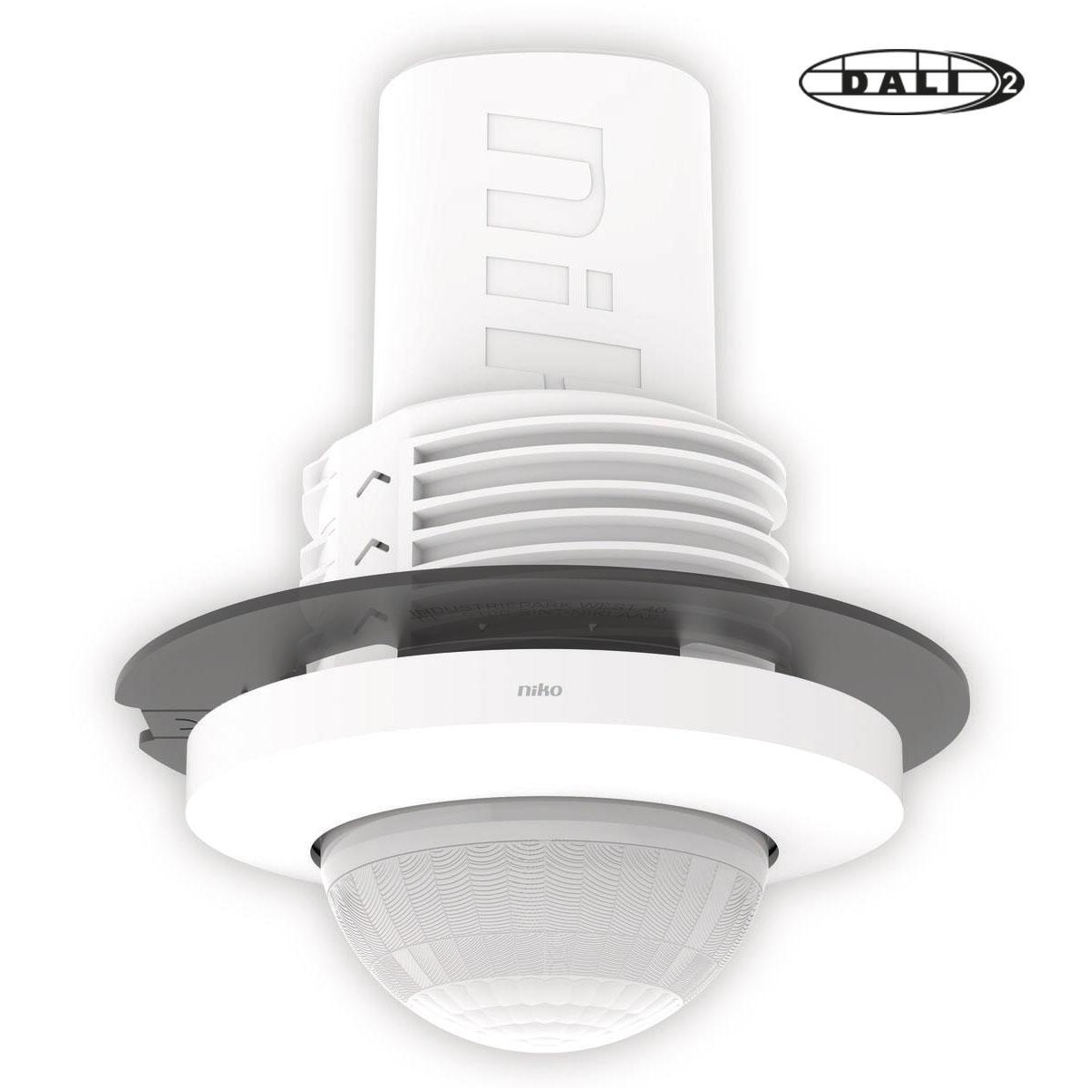 Tilst.-sensor P48LR, DALI-2, master comfort, 32-37m, for innfelling med SnapFit. Denne tilstedeværelsessensoren er en DALI-2 sertifisert mastersensor med lang rekkevidde for automatisk lysstyring. Sensoren kan styre flere enn 64 DALI-enheter over DALI-bussen og har dagslysstyring, tuneable white integrasjon for 3.dje-parts produkter, orienteringslysfunksjon, inntil 16 lys-scenarier, trådløs kommunikasjon master-til-master for foldedørsfunksjonalitet, lysstyring i omliggende områder, ubegrenset antall DALI-enheter ( > 64 DALI-devices). Multisonestyring, HCL (Human Centric Lighting) med 24 forhåndsinnstillinger. Styringsrelé for HVAC, stand-by minimering, lys av/på. Forhåndsinnstilling av lysnivå når dagslysstyring ikke er i bruk. Niko sitt unike SnapFit-system sikrer en hurtig og stabil montasje i alle tak- og himlingsplater. Sensoren monteres og demonteres enkelt og raskt i en "skru-og-klikk"-bevegelse. Lett tilgjengelige hurtigkoblinger gjør tilkoblingen enkel. Kabelavlastning montasje av kabeldeksel gjøres helt uten verktøy. Niko P40 og M40 sensorserien er testet i henhold til IEC63180 som er din garanti for pålitelig rekkevidde og sammenlignbarhet med andre sensortyper og -fabrikater. Sensoren ser et felt med diameter Ø37 m (målt på gulvet) ved en monteringshøyde 3 meter. Trådløs Bluetooth-kommunikasjon mellom master- og sekundærsensorer med repeaterfunksjon. Justerbar PIR-følsomhet i 4 nivåer, individuelt i hvert PIR-segment. Innstillinger og konfigurasjon kan beskyttes med PIN-kode. Robust potensialfritt relé som tåler alle typer belastninger og lyskilder, inkludert LED. Sensoren kan overstyres og halvautomatiseres vha 230 V impulsbryter. Igangkjøring og programmering av sensoren gjøres raskt og enkelt med Niko Detector Tool. 2-veis Bluetooth®-kommunikasjon sikrer rask igangkjøring og umiddelbar tilbakemelding i appen. Loggen registrerer de siste konfigurasjonsendringene. Benytter den web-baserte Niko Detector Portalen til dokumentasjon, sikkerhetskopiering og utveksling av konfigurasjonsfiler.