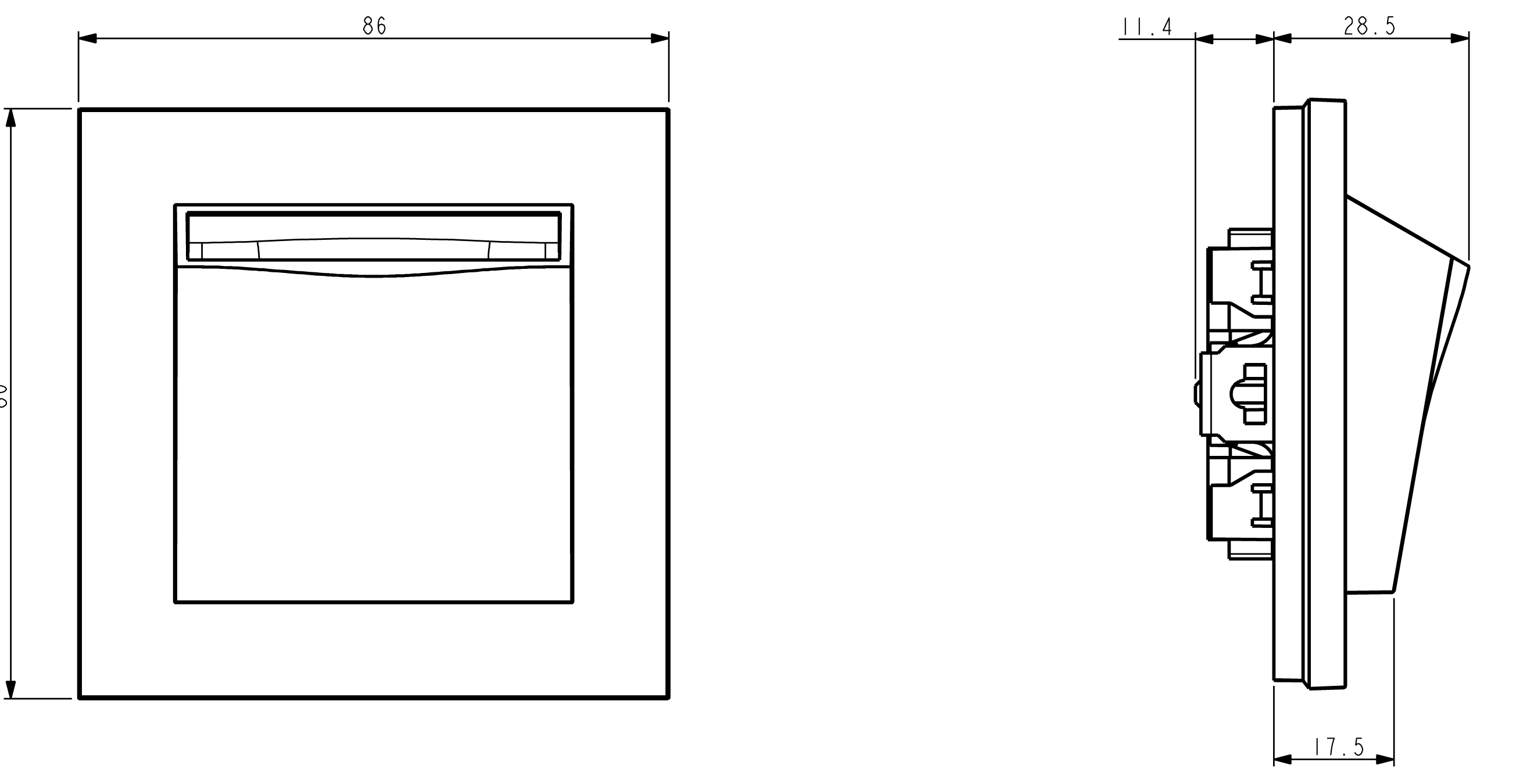 Betjenes med nøkkelkort. Beregnet brukt som hovedbryter i hotellrom, sykehus, institusjoner, kontorer, skipslugarer etc. Leveres som 1 polet, 2 polet, samt endevender. Bryteren er merket "CARD" med innebygget blått lys. Ved påveggmontasje benyttes påveggkappe. Tilpasset alle ELKO kombinasjonsplater.