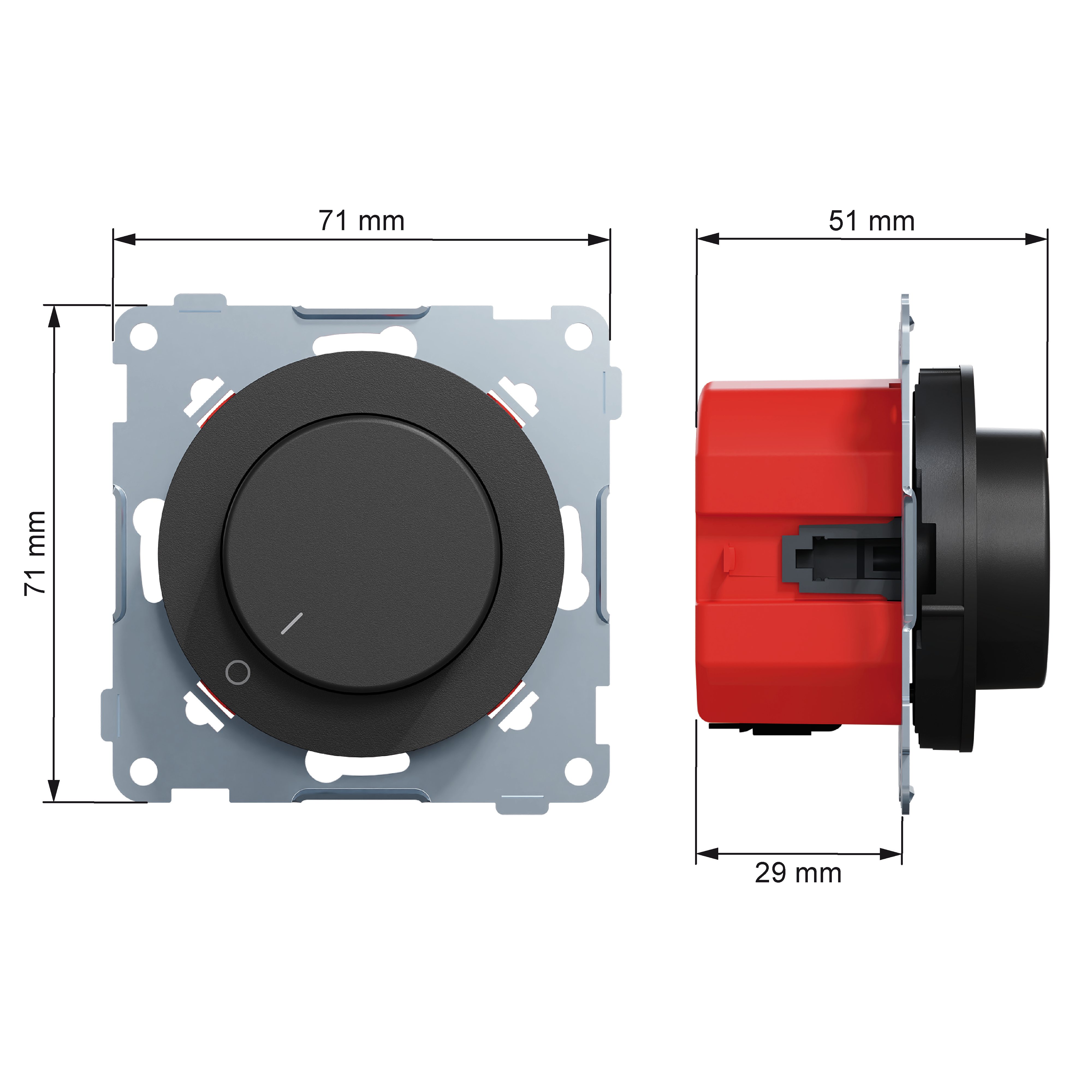 ELKO One Sort dimmer med 2-polet bryter for dimming av lys i bad, vaskerom og andre rom der det er krav om 2-polet brudd.