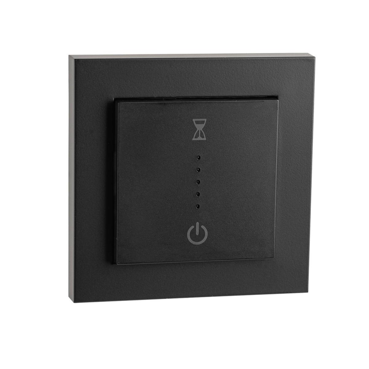 Tidsbryter 13A som benyttes til lys, kaffetrakter, baderomsvifte etc. Justerbar etterløpstid fra 5 minutter – 8 timer. Gjenstående tid før utkobling vises av de 5 indikatorlysene i front. Tidsbryter kan også kombineres med ekstern trykkbryter for fjernbetjening.