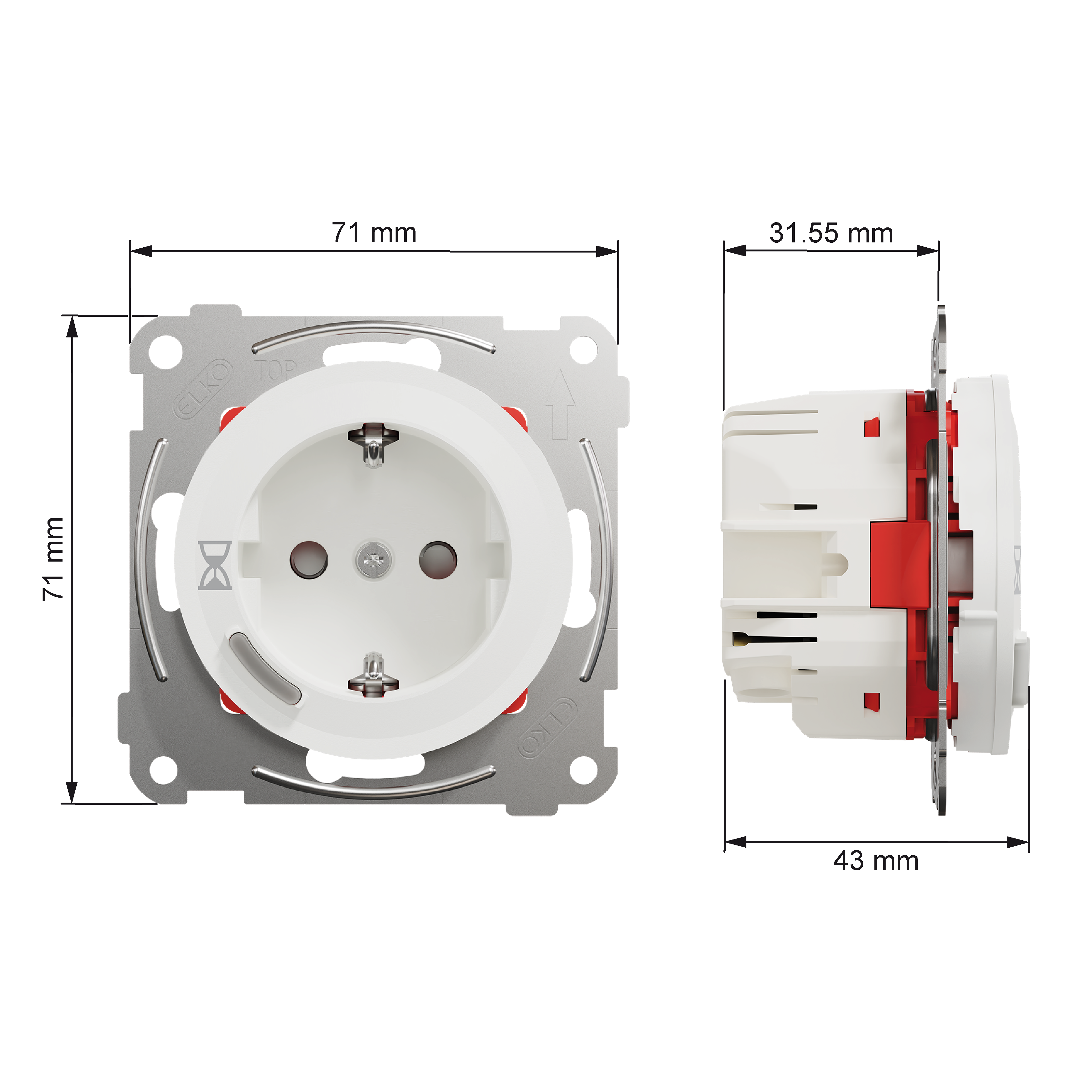 Stikkontakten er med skruterminaler og leveres uten ramme. Dersom man ønsker å fullføre produktet med en enkel ramme, kan man benytte ELKO One 1-hulls ramme i renhvit (EKO50000), eller velge annen ramme i passende utforming og farge. Passer inn i standard veggbokser og i alle ELKO One kombinasjonsplater