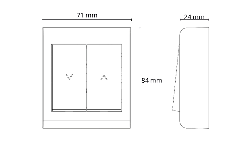 Påvegg markisebryter. Velegnet for styring av små motorer, som f.eks. Persienner og markiser. Vippestykkene er merket med pil opp/ned. SG klemmer sikrer rask installasjon!