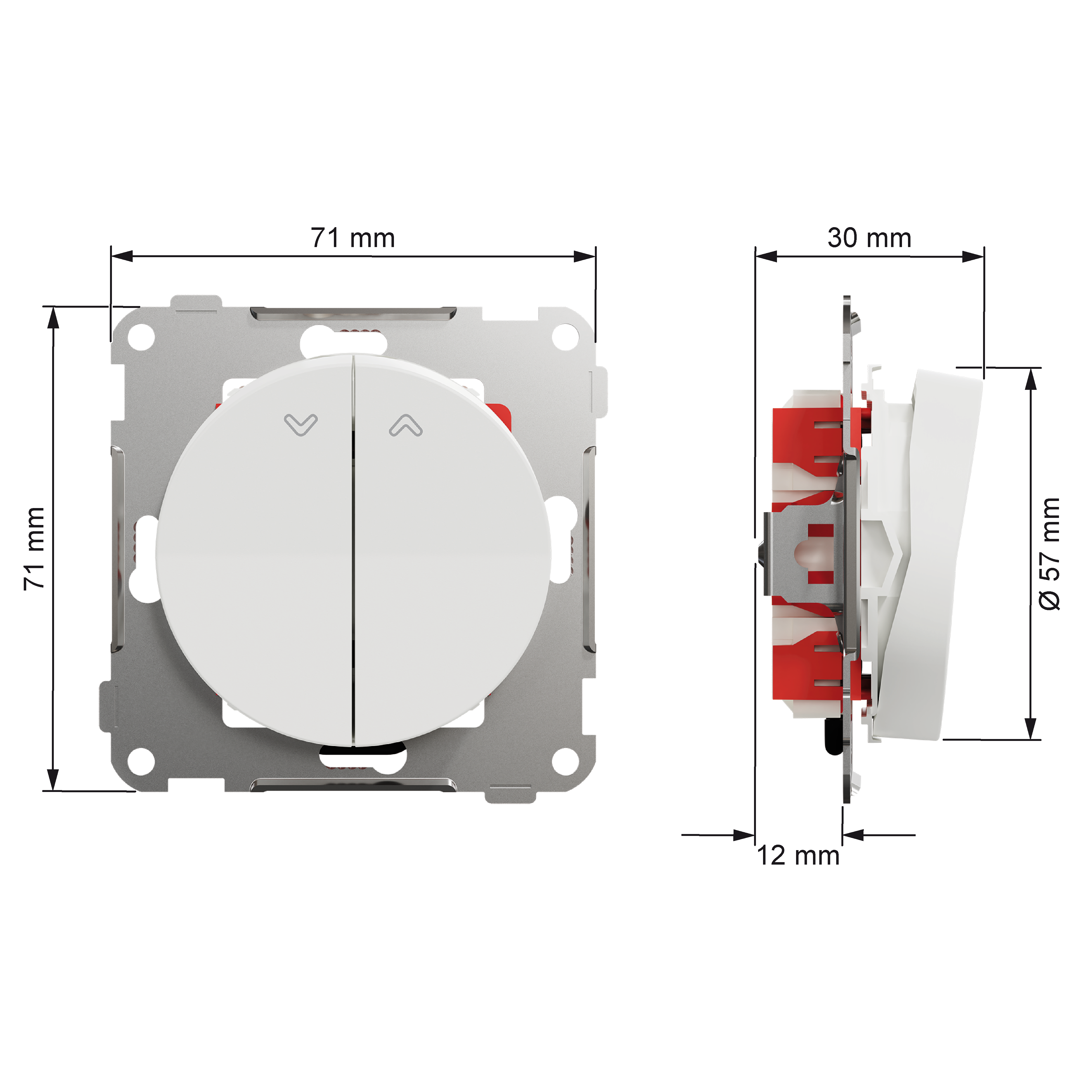 ELKO One innfelt markisebryter av fargebestandig materialet i renhvit (RAL9003). Bryteren er spesielt egnet for småmotorer, som for eksempel markiser og persienner. Vippestykkene er merket med pil symboler for kjøring opp og ned. Bryteren kan benyttes påvegg i kombinasjon med en ELKO One påveggskappe. Bryteren er med skruterminaler og leveres uten ramme. Dersom man ønsker å fullføre produktet med en enkel ramme, kan man benytte ELKO One 1-hulls ramme i renhvit (EKO50000), eller velge annen ramme i passende utforming og farge.