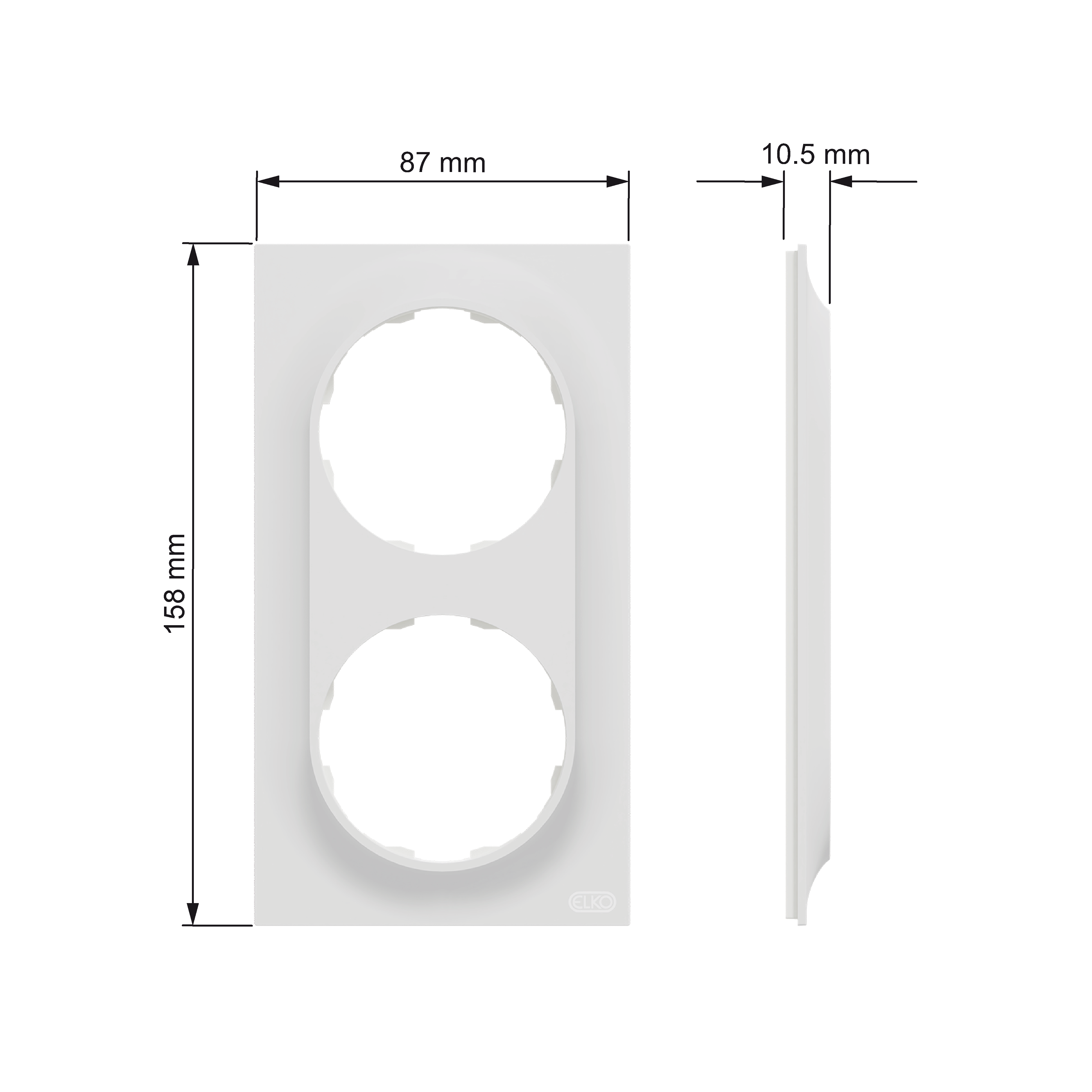 ELKO One 2 hulls ramme av fargebestandig materialet i renhvit (RAL9003). Kompletteres med ELKO One brytere, dimmere, termostater, tidsbrytere, uttak og lignende.