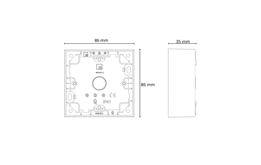 - Monteringsarrangement: Påveggsramme med løs bunnplate