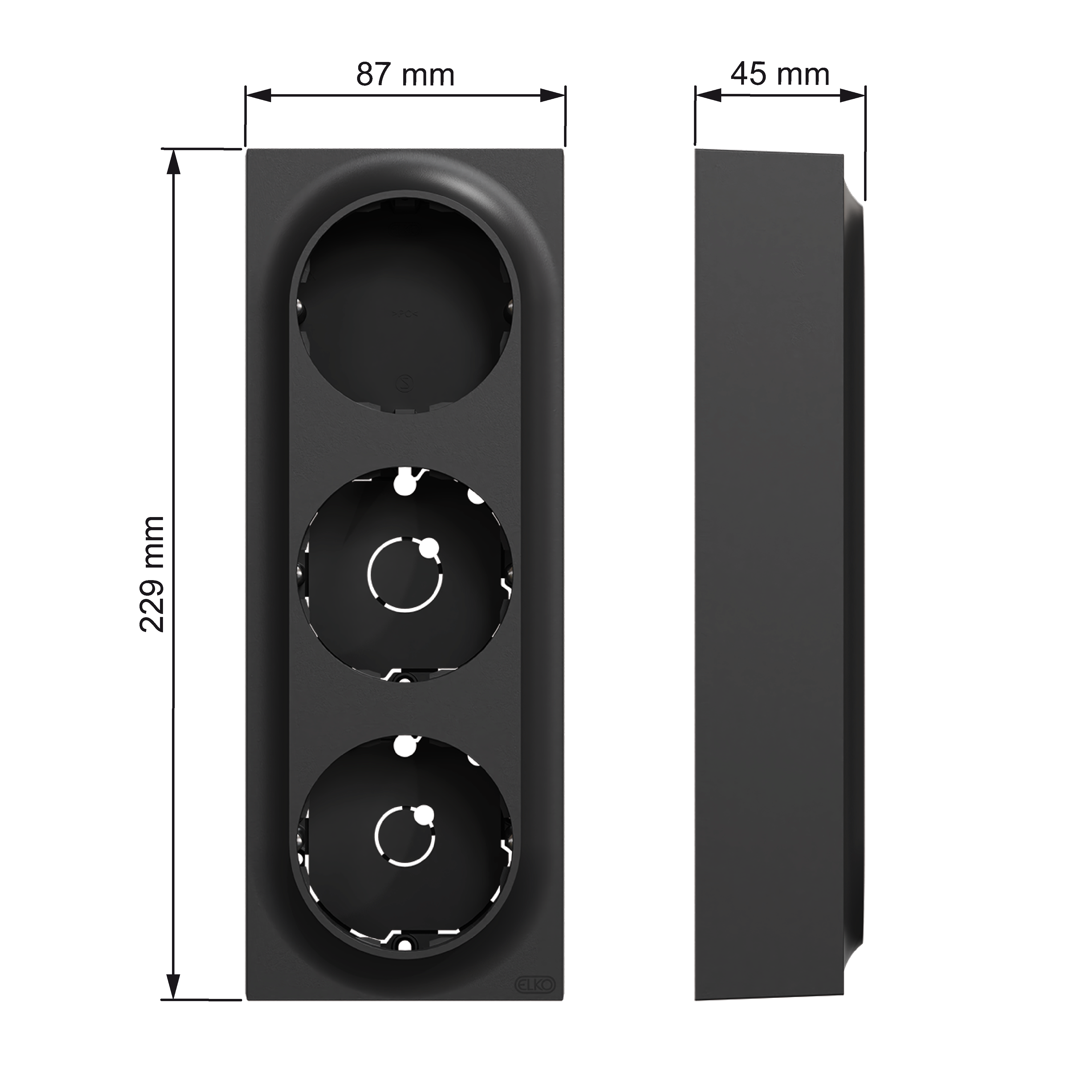 ELKO One trippel påveggskappe 35mm. Benyttes der innfelt materiell ønskes ombygget til påvegg.