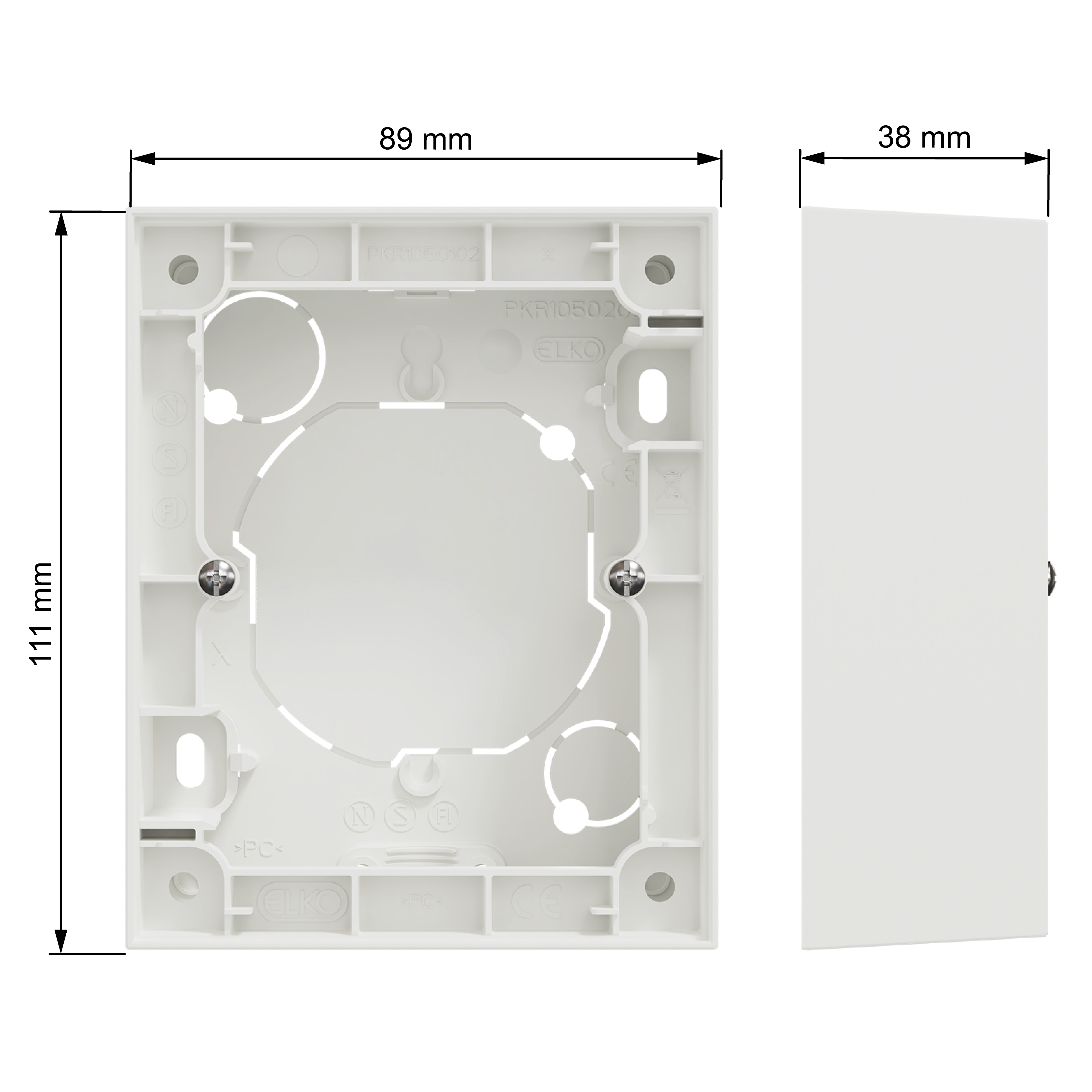 ELKO One påveggkappe som passer til innfelte toveis stikkontakter. Festeører som passer på standard veggboks.