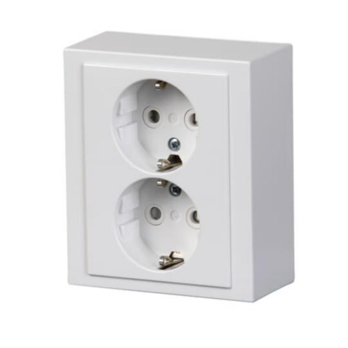 Stikkontakt dobbel med jord, påvegg. Impressivo. Farge: hvit.