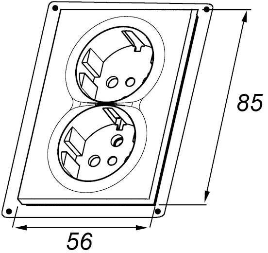 Dobbel stikkontakt innfelt med jord og barnevern. Kun for 1,5 veggbokser.