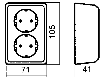 Dobbel stikkontakt på vegg med jord, med barnevern. Leveres med bakplate og termoplast kappe. For utsparing i kappen, anbefales utsparingstang 8814754. Overkoblingsklemme L701 kan benyttes (1511408).