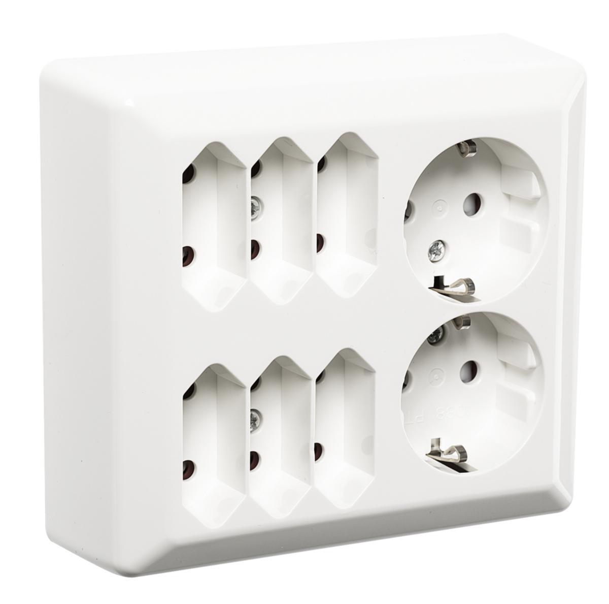 2 stk uttak med jord og 6 stk eurostikk. Leveres med barnevern. Multistikkontakten kan monteres over enkel veggboks. Multistikkontakt 2+6 kan påmonteres strekkavlaster L487. Maks 10A belastning på eurostikk. Maks 16A belastning på uttak med jord.