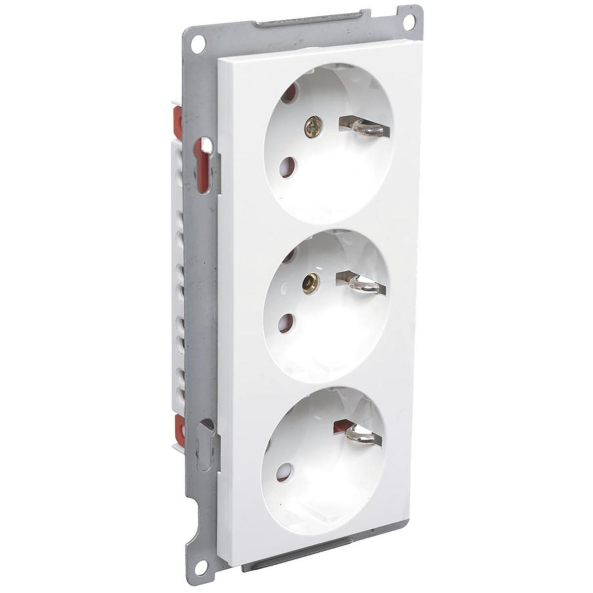 Leveres med barnevern og passer inn i RS Nordic dobbel kombinasjonsplate eller med 3-4-5 hull. Innstikkhullene er vridd 90 grader, slik at ved bruk av plugg med sideinnføring vil ledningen henge nedover.