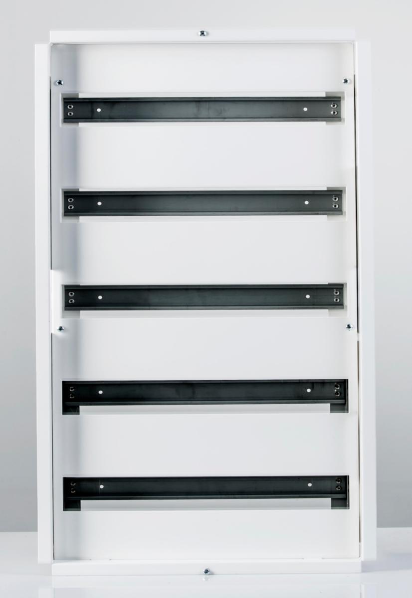 Fordelingsramme for IP54/TS2 og Nebb skap med utenpåliggende eller innfelt dør. Brukes til fordeling, ferdig med DIN skinner