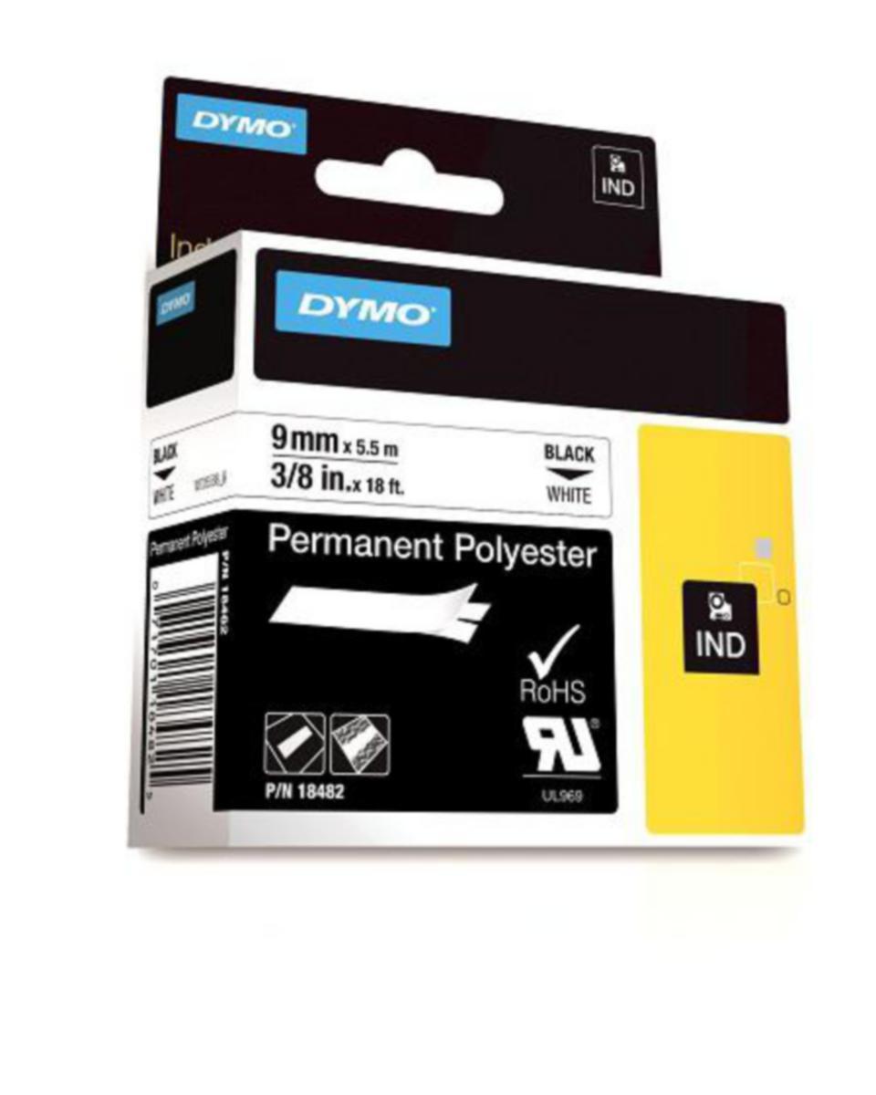 Dymo ID1 polyester pregetape 9mm sort skrift på hvit tape
