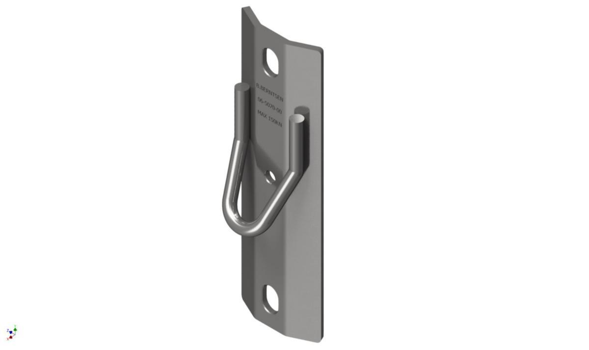 Avlange hull for 20mm bolter samt ett senterhull Ø14 for treskrue.Bardunbøylen er vinklet 30 grader.