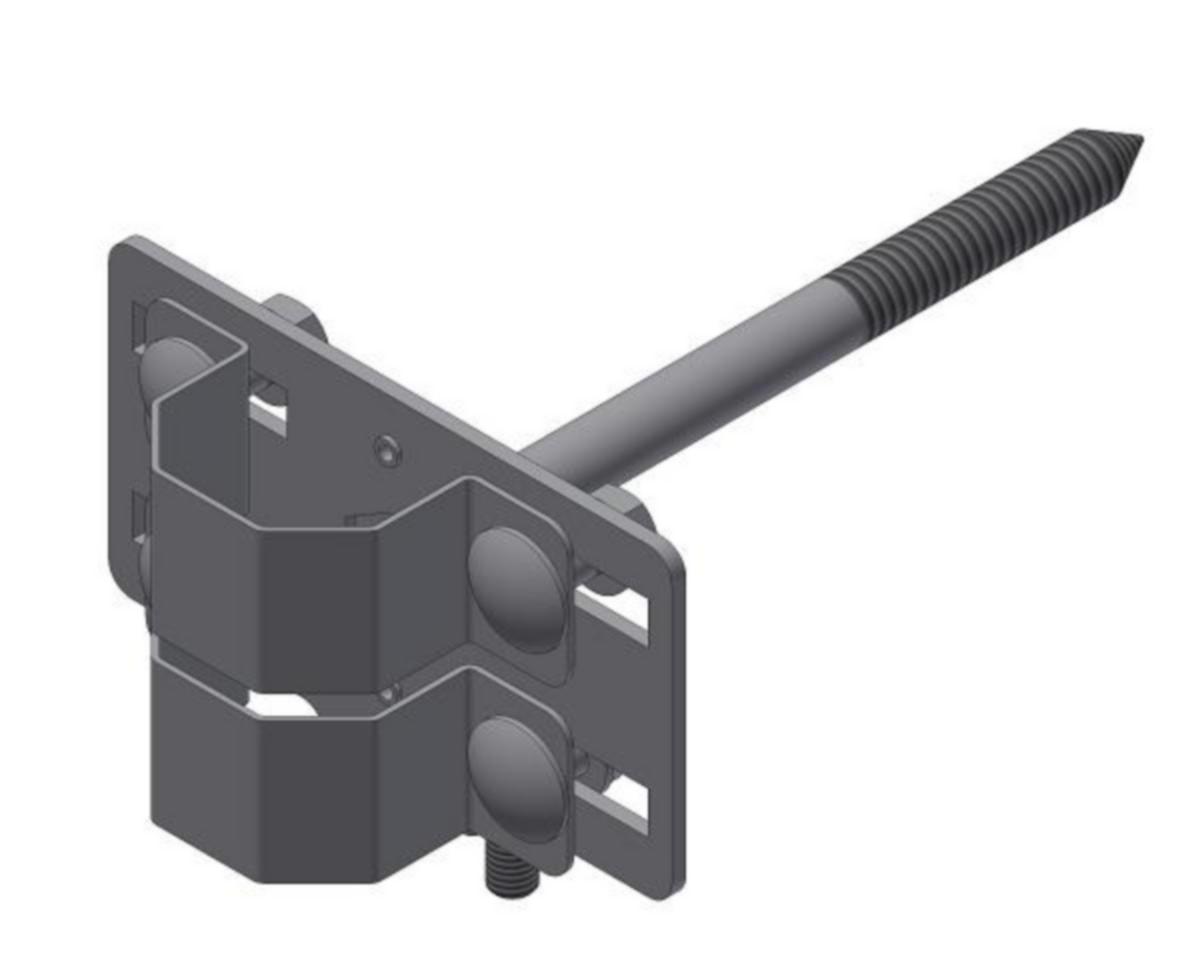 Består av sadel, avstandsfeste og skjøtestykke med tilkoblingsmulighet for jording.
