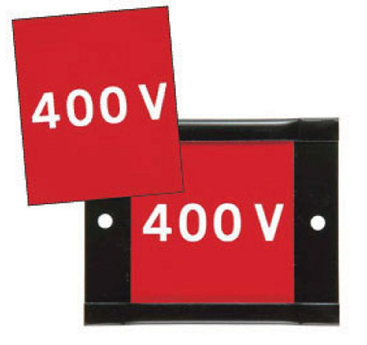 H25 rød/hvit skiltsystem brukes til merking av stolper, kabelskap, eller det man måtte ønske å merke med spenning 400V. Teksthøyden er 25mm og er stanset ut i en 0,7mm aluminiums-plate som polyesterlakkeres rød.