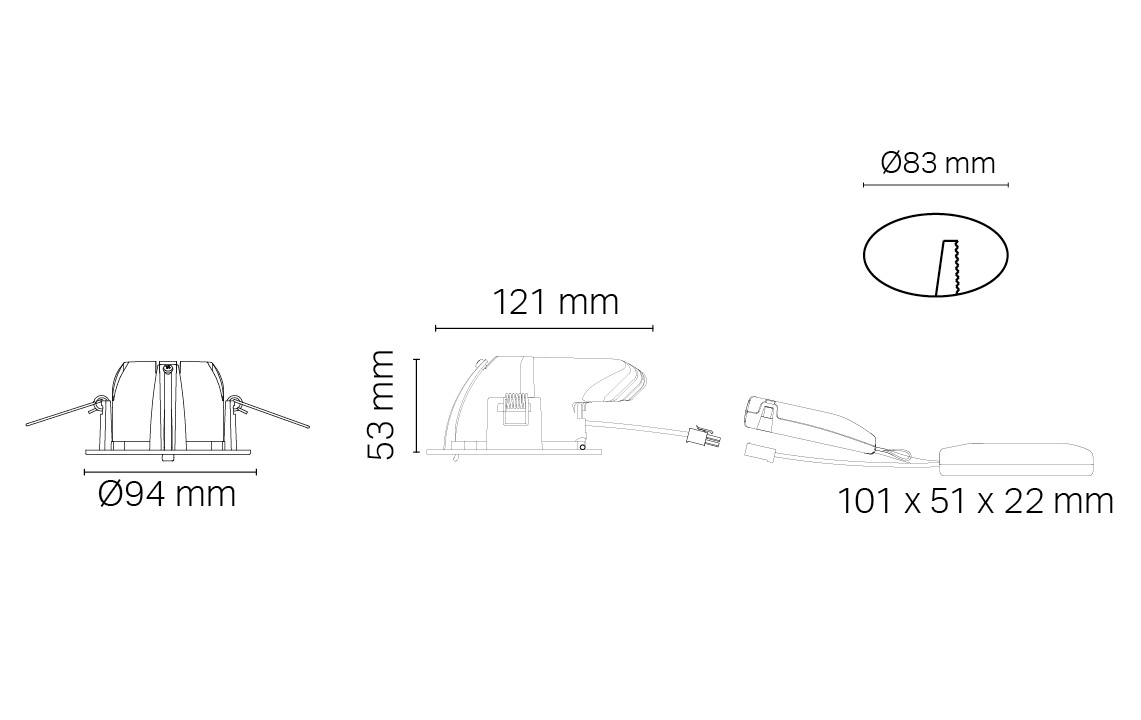 Downlight i eksklusivt utseende for inne- og utendørsbruk med 42° lysspredningsvinkel. Meget godt egnet for skråtak og effektbelysning med den spesielle 40° uttrekkbare vippefunksjonen. Produsert i trykkstøpt aluminium med pulverlakkert hvit overflate, og klart frontglass. Integrert, effektiv LED-chip med svært god lyskvalitet. Dimbar med faseavsnittdimmer. Vi anbefaler LEDDim 400 og LEDDim Smart. Med DimToWarm-varianter kan du dimme lyset fra 2800 Kelvin til 2000 Kelvin og skape stemningsfullt, dempet lys. Verktøysfri montering og mulighet for viderekobling. Innbyggingshøyde 53mm, og hulldiameter Ø83mm. Beskyttelsesklasse IP44.