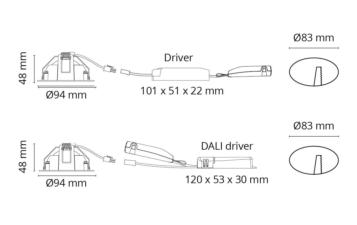 Lavtbyggende rund downlight. Med en inntrukket lyskilde for mindre blending. Kan vippes i alle rettninger opptil 30°. Med en lysspredning på 36° gir det en fin spredning av lyset. Det er 50 000 timer levetid på lyskilden, fargtemperaturen justeres fra 2800K ved 100% og 2000K når den dimmes ned til ca 5%. Gyro DimToWarm leveres komplett med driver.