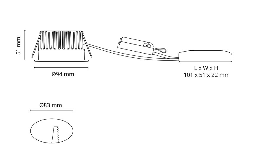 - Innbyggingsdiameter: 83 mm