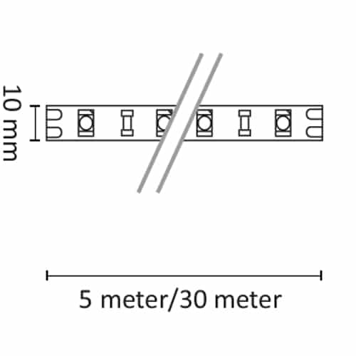 LED strip komplett sett, inneholdende: 5 meter rull 10mm høyeffektiv LED strip, 1 x tilkobling med 2 meter kabel, 2 x skjøter, 2 x skjøt med 150mm mellomledning (for hjørner). Alle skjøter og tilkoblinger med sneppkoblinger (uten lodding). LED driver med avdekning, 50W / 24V dimbar til meget lavt nivå med standard fase-avsnitt dimmer. LED strip med høy fargegjengivelse Ra>90, kuttlengde 50mm, 160 LED/meter. Bredde 10mm. Maks lengde på LED strip er 5 meter. 9,6W/m. PowerStrip har tape på baksiden, og kan med fordel benyttes i kombinasjon med Aluprofil 3241920 (utenpåliggende) eller 3241921 (innfelt).