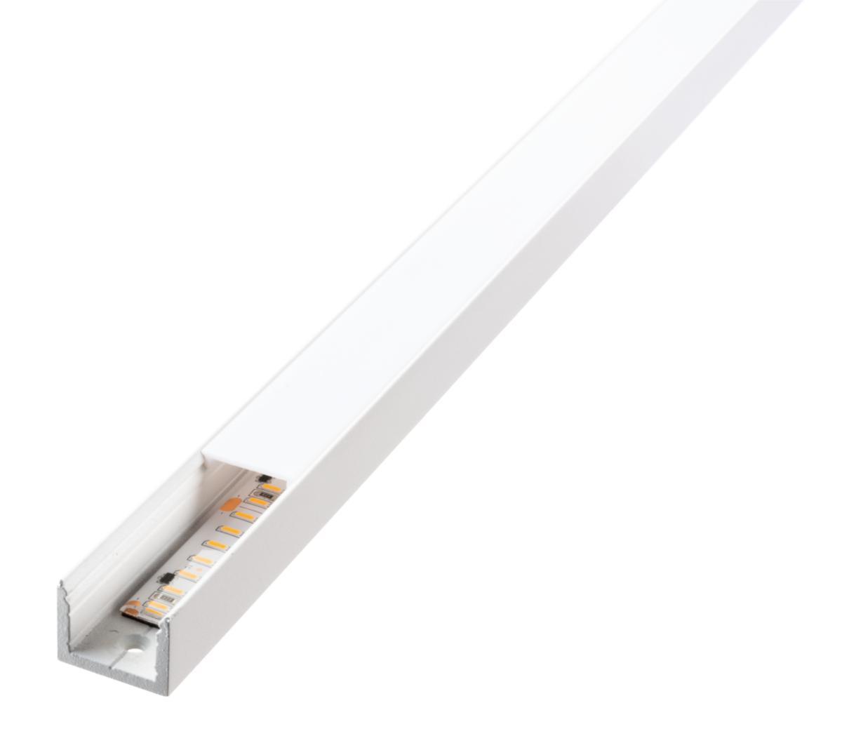 Profilene leveres med en solid frontavskjerming i polykarbonat (PC), som enkelt kan hektes av og på. Frontavskjermingen leveres også i rull, slik at du har muligheten til svært lange, sammenhengende fronter. LED-ene har liten avstand og gir et jevnt lys.