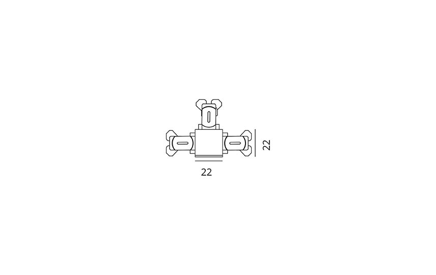 Skjøt T-formfaktor med strømtilkobling til å ha mellom to skinner.