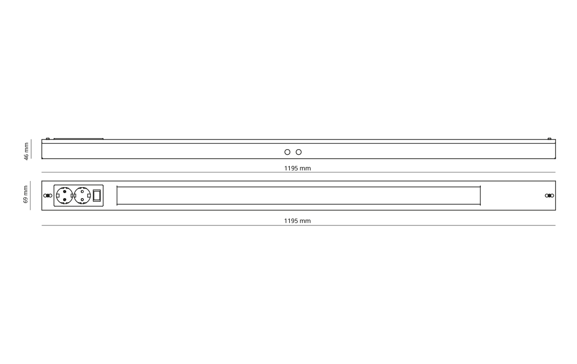 Dimbar og kostnadseffektiv benkarmatur velegnet til bakbelysning av vegger og benker på kjøkken, vaskerom og lignende. Leveres med av/på bryter og 2 stikkontakter (16A). Gjennomgangskobling. Separat kobling for stikkontakt og lys