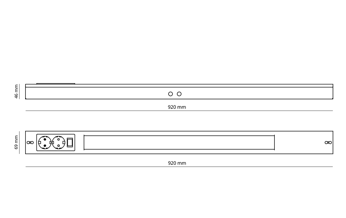 Dimbar og kostnadseffektiv benkarmatur velegnet til bakbelysning av vegger og benker på kjøkken, vaskerom og lignende. Leveres med av/på bryter og 2 stikkontakter (16A). Gjennomgangskobling. Separat kobling for stikkontakt og lys