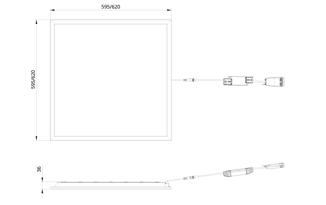 SENSE BASIC 600x600 3000lm 3K FASEAVSNITT KABEL & PLUGG 2M